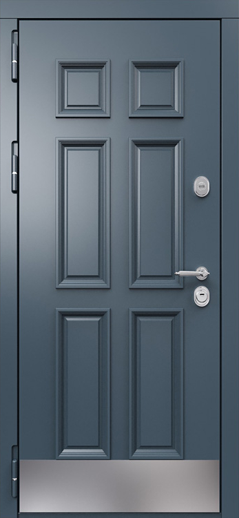 Дверь стальная МДФ эмаль №563 — это удачное сочетание надежной металлической основы и аккуратной декоративной отделки. Каркас из профильной трубы и стальной лист толщиной 2 мм обеспечивают прочность и устойчивость к взлому, а ребра жесткости повышают общий ресурс эксплуатации. Важной особенностью модели является наличие терморазрыва в коробке и полотне: конструкция эффективно препятствует промерзанию зимой, исключает появление конденсата и сохраняет тепло в помещении. Панели МДФ с ПВХ-покрытием, использованные с обеих сторон, защищены от влаги и мелких механических повреждений, благодаря чему дверь долго сохраняет привлекательный внешний вид. Два контура резинового уплотнителя дополнительно усиливают защиту от сквозняков и уличного шума. Такая дверь органично подходит для частных домов, квартир и офисов, сочетая в себе надежность стали и практичность современной отделки. Дверь стальная МДФ эмаль №563 от производителя: быстрое изготовление и монтаж в Видном, индивидуальные размеры, широкий выбор материалов и фурнитуры, официальная гарантия до 10 лет.