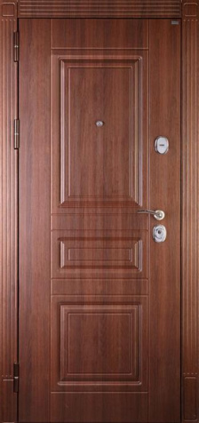 Входная металлическая дверь на заказ с МДФ №567 сочетает в себе надежность стали и эстетичность древесной отделки. Такая модель одинаково органично смотрится в частном доме, квартире или офисе, обеспечивая солидный внешний вид и высокий уровень защиты. Конструкция собрана из профильных труб с ребрами жесткости и дополнена листом металла толщиной 2 мм, что делает дверь устойчивой к механическим нагрузкам и попыткам взлома. Внутренняя и внешняя стороны оформлены МДФ накладками, которые придают поверхности аккуратный вид, легко поддаются чистке и сохраняют цвет даже при длительной эксплуатации. Два контура уплотнения защищают от сквозняков, а возможность дополнительной шумо- и теплоизоляции делает изделие более универсальным. Несмотря на массивность, дверь выглядит аккуратно и современно, подчеркивая статус владельца и добавляя интерьеру завершенности. Входная металлическая дверь на заказ с МДФ №567 от производителя: быстрое изготовление и монтаж в Видном, индивидуальные размеры, широкий выбор материалов и фурнитуры, официальная гарантия до 10 лет.
