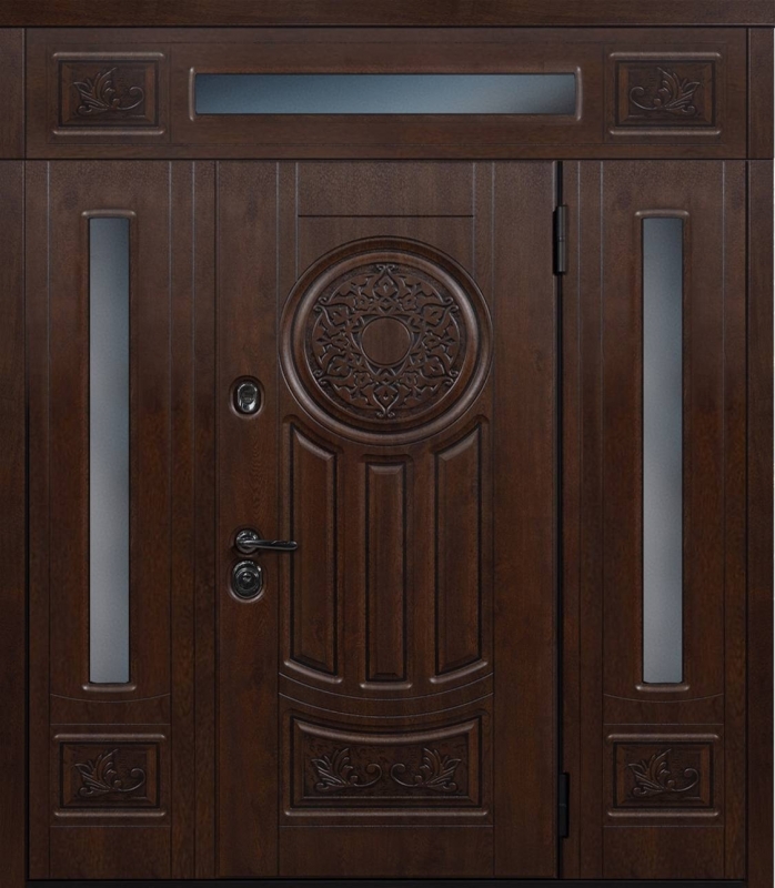 Эта нестандартная парадная дверь с фрамугой №6 — отличный выбор для тех, кто ценит элегантность и долговечность. Внешняя и внутренняя отделка из МДФ придает дверям стильный и современный вид, а также защиту от механических повреждений. МДФ устойчива к царапинам и вмятинам, что делает дверь идеальной для долгосрочной эксплуатации. Каркас из профильной трубы 50х25 мм и лист металла толщиной 2 мм обеспечивают прочность и надежность, а ребра жесткости из профильных труб гарантируют дополнительную устойчивость. В двери установлены блокираторы, два контура уплотнителей из резины, что повышает звуко- и теплоизоляцию. Замки от известных производителей, таких как Просам и Мосрентген, обеспечат надежную защиту. Возможность комбинировать отделку, добавлять зеркало, стеклопакет или кованые элементы позволяет легко адаптировать дверь под любые предпочтения. Нестандартная парадная дверь с фрамугой №6 от производителя: быстрое изготовление и монтаж в Видном, индивидуальные размеры, широкий выбор материалов и фурнитуры, официальная гарантия до 10 лет.