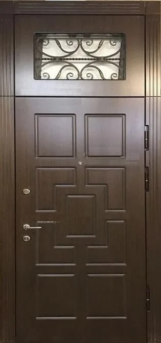 Эта входная дверь с решеткой и фрамугой №2 — практичный и надежный выбор для тех, кто ищет баланс между безопасностью и эстетикой. Ее конструкция выполнена из профильной трубы 50х25 мм и металла толщиной 2 мм, что гарантирует прочность и долговечность. Внешняя отделка из МДФ придает двери современный вид и защищает от внешних воздействий, таких как царапины и вмятины. Фрамуга добавляет свет в помещение, а решетка обеспечивает дополнительную безопасность. Резиновый уплотнитель с двумя контурами эффективно защищает от холода и пыли, а блокираторы обеспечивают надежную защиту от несанкционированного доступа. Эта модель может быть дополнена стеклопакетом, зеркалом или коваными элементами для улучшения внешнего вида, а также оборудована видеодомофоном для дополнительного удобства. Входная дверь с решеткой и фрамугой №2 от производителя: быстрое изготовление и монтаж в Видном, индивидуальные размеры, широкий выбор материалов и фурнитуры, официальная гарантия до 10 лет.