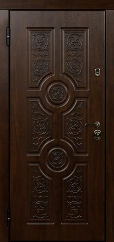 Квартирная дверь МДФ коричневого цвета с красивым узором №535