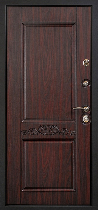 Дверь входная металлическая с МДФ накладкой №541 сочетает прочность стали и аккуратный внешний вид, подходящий как для квартиры, так и для офиса или частного дома. Основу конструкции формирует каркас из профильной трубы и стальной лист толщиной 2 мм, дополненный рёбрами жёсткости для высокой устойчивости к нагрузкам. С обеих сторон полотно облицовано плитами МДФ, что придаёт поверхности аккуратность и обеспечивает стойкость к царапинам и мелким ударам. Такой материал сохраняет форму и цвет в течение долгих лет, не теряя эстетики при ежедневной эксплуатации. Два контура резинового уплотнителя помогают удерживать тепло и защищают от сквозняков, а блокираторы повышают надёжность замкового узла. Модель №541 — это сбалансированное решение для тех, кто ценит практичность, прочность и строгий внешний стиль без лишних деталей. Дверь входная металлическая с МДФ накладкой №541 от производителя: быстрое изготовление и монтаж в Видном, индивидуальные размеры, широкий выбор материалов и фурнитуры, официальная гарантия до 10 лет.