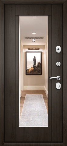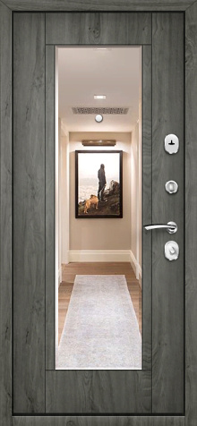 Для тех, кто ценит не только надёжность, но и практичность, металлическая входная дверь с зеркалом становится отличным решением. Она органично впишется как в частный дом, так и в квартиру или офис, позволяя сэкономить пространство и добавить функциональности интерьеру. В основе конструкции — прочный каркас из профильной трубы и стальной лист толщиной 2 мм, что обеспечивает серьёзную защиту от взлома и долговечность эксплуатации. Наружное покрытие выполнено методом порошкового термонапыления, устойчивого к механическим повреждениям и погодным условиям, а изнутри используется МДФ с ПВХ-плёнкой, сохраняющей привлекательный вид долгие годы. Железная дверь входная с зеркалом №75 дополнена двумя замками российского производства — сувальдным и цилиндровым, что повышает уровень безопасности. Возможность менять отделку, устанавливать умные замки или видеодомофон делает модель универсальной и адаптируемой под любые запросы. Железная дверь входная с зеркалом №75 от производителя: быстрое изготовление и монтаж в Видном, индивидуальные размеры, широкий выбор материалов и фурнитуры, официальная гарантия до 10 лет.