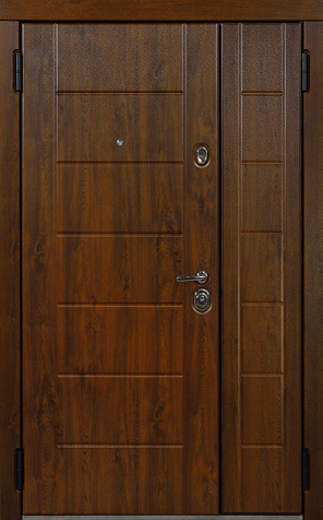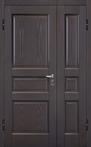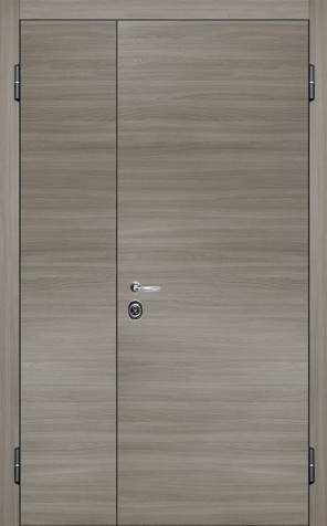 Базовая схема — активная и пассивная створки в усиленной коробке. Пассивная фиксируется верхним и нижним ригелями или скрытыми шпингалетами; это даёт жёсткость и исключает самопроизвольное открывание. Замковая группа подбирается под сценарии: основной замок + вспомогательный, ручки, броненакладки, глазок или видеоглазок.