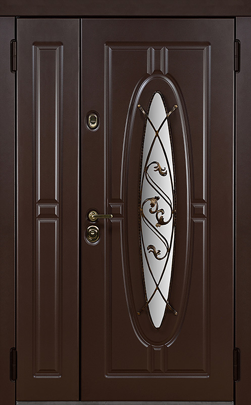 Двойная уличная дверь с овальным стеклом и художественной ковкой №14 — это уникальное сочетание функциональности и эстетики. Панели МДФ с ПВХ-покрытием, используемые как для внешней, так и для внутренней отделки, обладают высокой стойкостью к внешним воздействиям, сохраняя свой внешний вид на долгие годы. Внешний декор в виде художественной ковки придаёт двери особый шарм, подчеркивая её стиль и индивидуальность. Двойная уличная дверь с овальным стеклом и художественной ковкой №14 от производителя: быстрое изготовление и монтаж в Видном, индивидуальные размеры, широкий выбор материалов и фурнитуры, официальная гарантия до 10 лет.