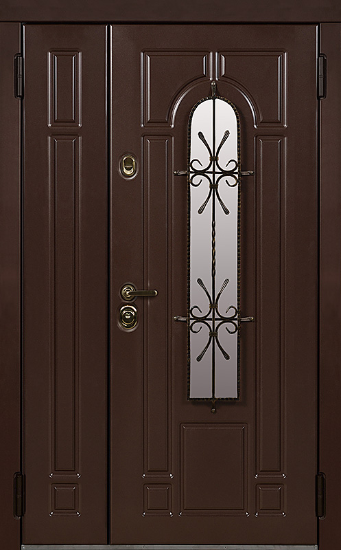 Эта металлическая двухстворчатая дверь с арочным стеклопакетом №15 представляет собой идеальный баланс между эстетикой и прочностью. Арочное стекло добавляет в её дизайн утончённость, а ковка в декоре придаёт изысканный, но в то же время крепкий и надёжный вид. Плита МДФ, используемая как для внешней, так и для внутренней отделки, не только сохраняет прекрасный внешний вид, но и устойчива к механическим повреждениям. Металлическая двухстворчатая дверь с арочным стеклопакетом №15 от производителя: быстрое изготовление и монтаж в Видном, индивидуальные размеры, широкий выбор материалов и фурнитуры, официальная гарантия до 10 лет.