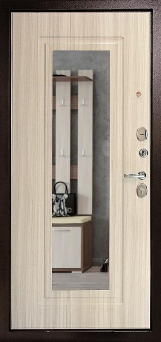 Недорогая офисная металлическая дверь №7 идеально подходит для использования в офисах, частных домах и квартирах. Ее конструкция с профильной трубой 50х25 мм и металлическим листом толщиной 2 мм гарантирует прочность и долговечность. Внешняя и внутренняя отделка из накладки МДФ придает двери элегантный и современный вид, а также повышает ее износостойкость. Зеркало, установленное в двери, добавляет стильный элемент декора, который будет выгодно смотреться в любом помещении. Два контура уплотнения обеспечат защиту от шума и холода. Несмотря на отсутствие терморазрыва, терморазрыв в коробке и полотне эффективно поддерживает стабильную температуру внутри помещения. Замки российского производства — сувальдный Просам и цилиндровый Мосрентген — обеспечивают надежную защиту и безопасное использование. Недорогая офисная металлическая дверь №7 от производителя: быстрое изготовление и монтаж в Видном, индивидуальные размеры, широкий выбор материалов и фурнитуры, официальная гарантия до 10 лет.
