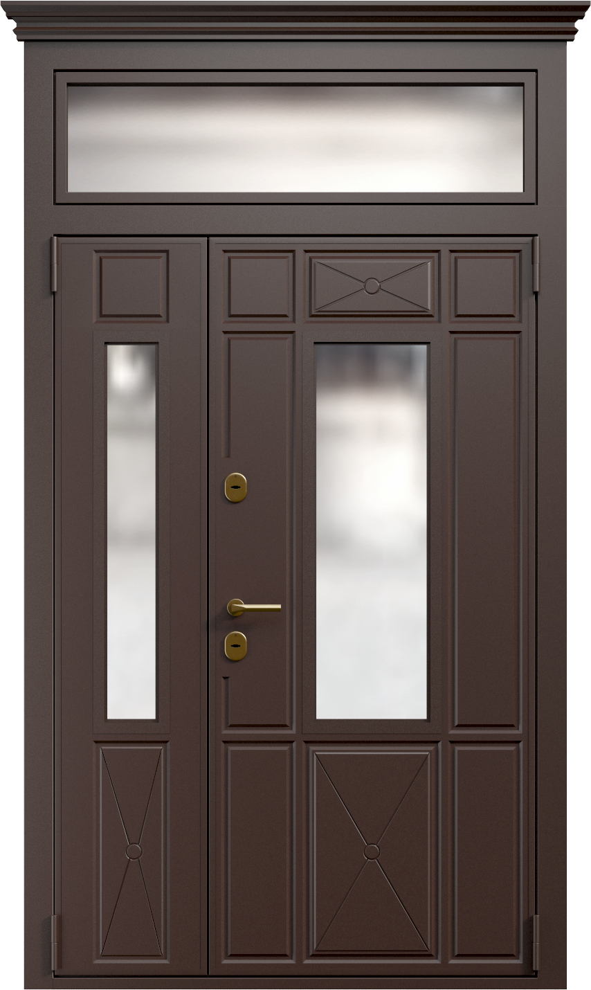 Морозостойкая дверь в широкий проем с глухим полотном стеклом и ковкой №30