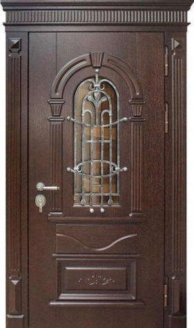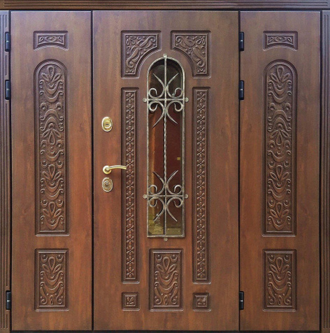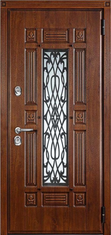Сочетание надежной конструкции и декоративной выразительности делает входную металлическую дверь с ковкой и стеклом №20 удачным выбором для частных домов и коттеджей. Полотно собрано из профильных труб и усилено стальным листом толщиной 2 мм, дополнено ребрами жесткости и блокираторами, что обеспечивает прочность и устойчивость к нагрузкам. Два контура уплотнителя защищают от сквозняков и влаги, а по желанию доступна дополнительная шумо- и теплоизоляция. Отделка выполнена панелями МДФ ПВХ, стойкими к механическим повреждениям и перепадам температуры, благодаря чему дверь долго сохраняет свежий вид без потери эстетики. Особый акцент создают стеклянные вставки с коваными элементами, придающие входной группе парадность и индивидуальность. Такая дверь не только надежна в эксплуатации, но и подчеркивает стиль всего фасада. Входная металлическая дверь с ковкой и стеклом №20 от производителя: быстрое изготовление и монтаж в Видном, индивидуальные размеры, широкий выбор материалов и фурнитуры, официальная гарантия до 10 лет.