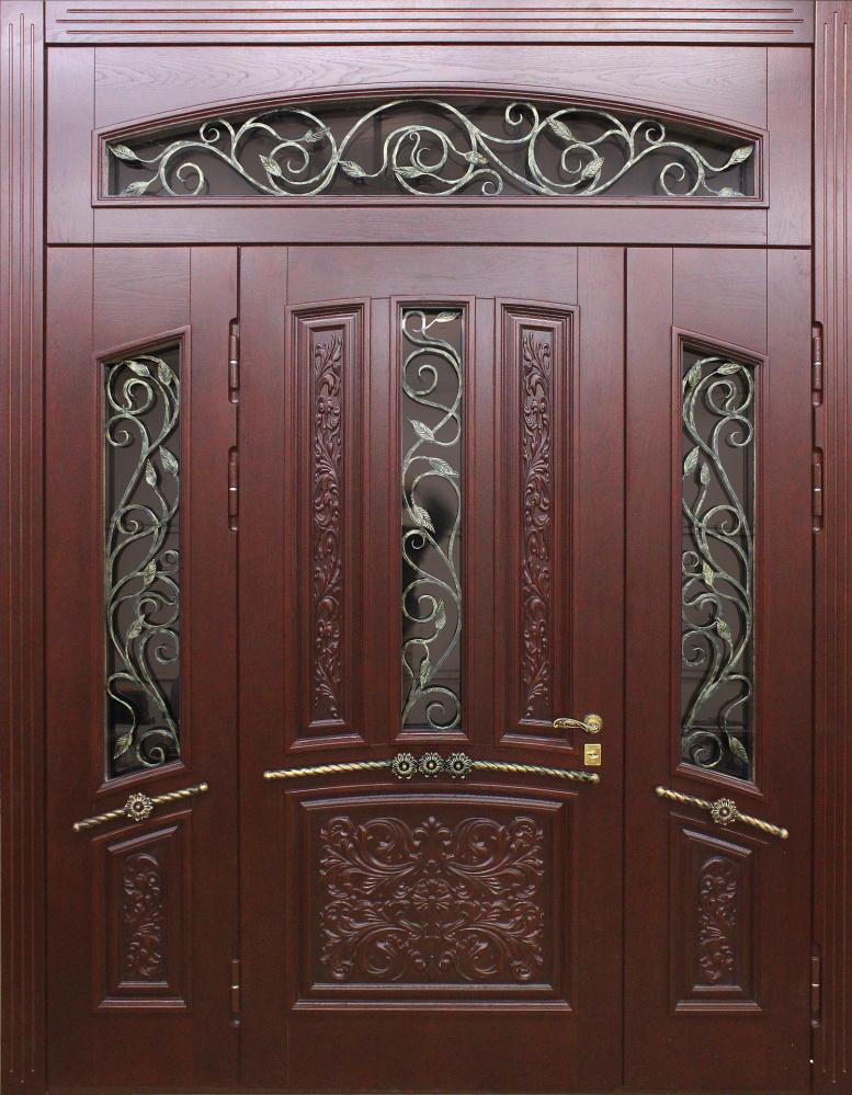 Большая входная дверь в частный дом со стеклом №328 создана для тех, кто ценит солидность и выразительный облик парадного входа. Широкое полотно на основе стальной конструкции с профилем 50х25 мм и листом металла толщиной 2 мм обеспечивает надежность и устойчивость к нагрузкам, а массив дуба в отделке придает дверному блоку статусный вид и долговечность. Натуральное дерево отличается стойкостью к повреждениям и долго сохраняет свой первозданный оттенок, что особенно важно для фасадных решений. Вставка из стекла добавляет естественного света в холл и делает интерьер более гостеприимным. Двойной контур резинового уплотнителя защищает от сквозняков, а наличие блокираторов повышает уровень безопасности. Такая дверь гармонично смотрится в коттеджах и частных домах, где парадный вход становится главным акцентом архитектуры. Большая входная дверь в частный дом со стеклом №328 от производителя: быстрое изготовление и монтаж в Видном, индивидуальные размеры, широкий выбор материалов и фурнитуры, официальная гарантия до 10 лет.