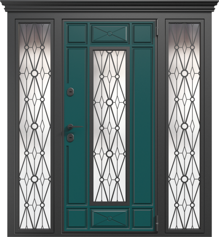 Входная дверь с кованой ручкой и фрамугой №6