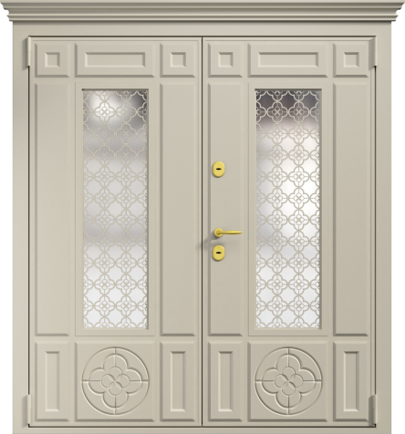 Дверь входная двухстворчатая с витражным стеклом №47