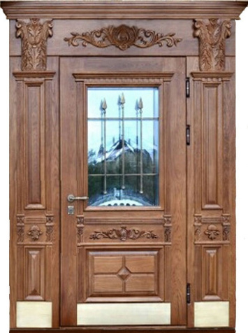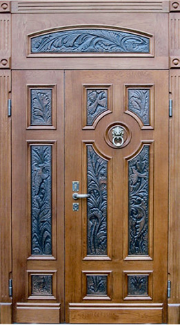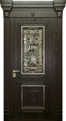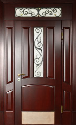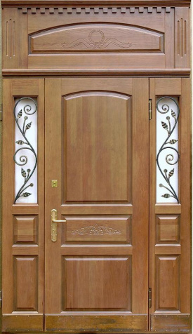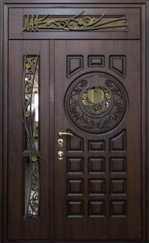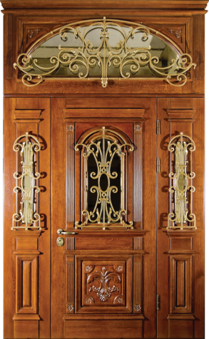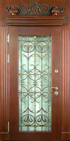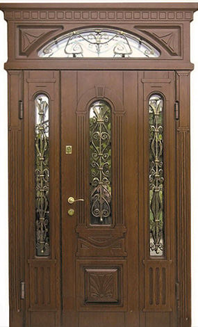 Высокая входная дверь с коваными элементами и фрамугой №5
