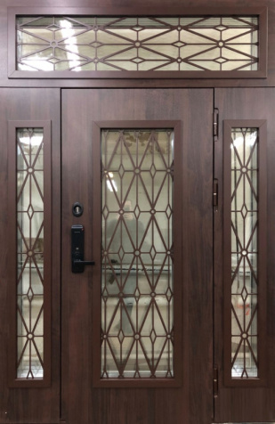 Бронированная дверь с порошковым напылением с фрамужной конструкцией №12